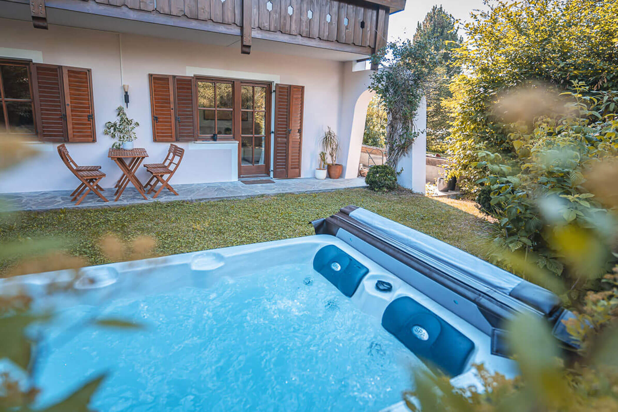 : großer privater Garten mit Outdoor-Jacuzzi