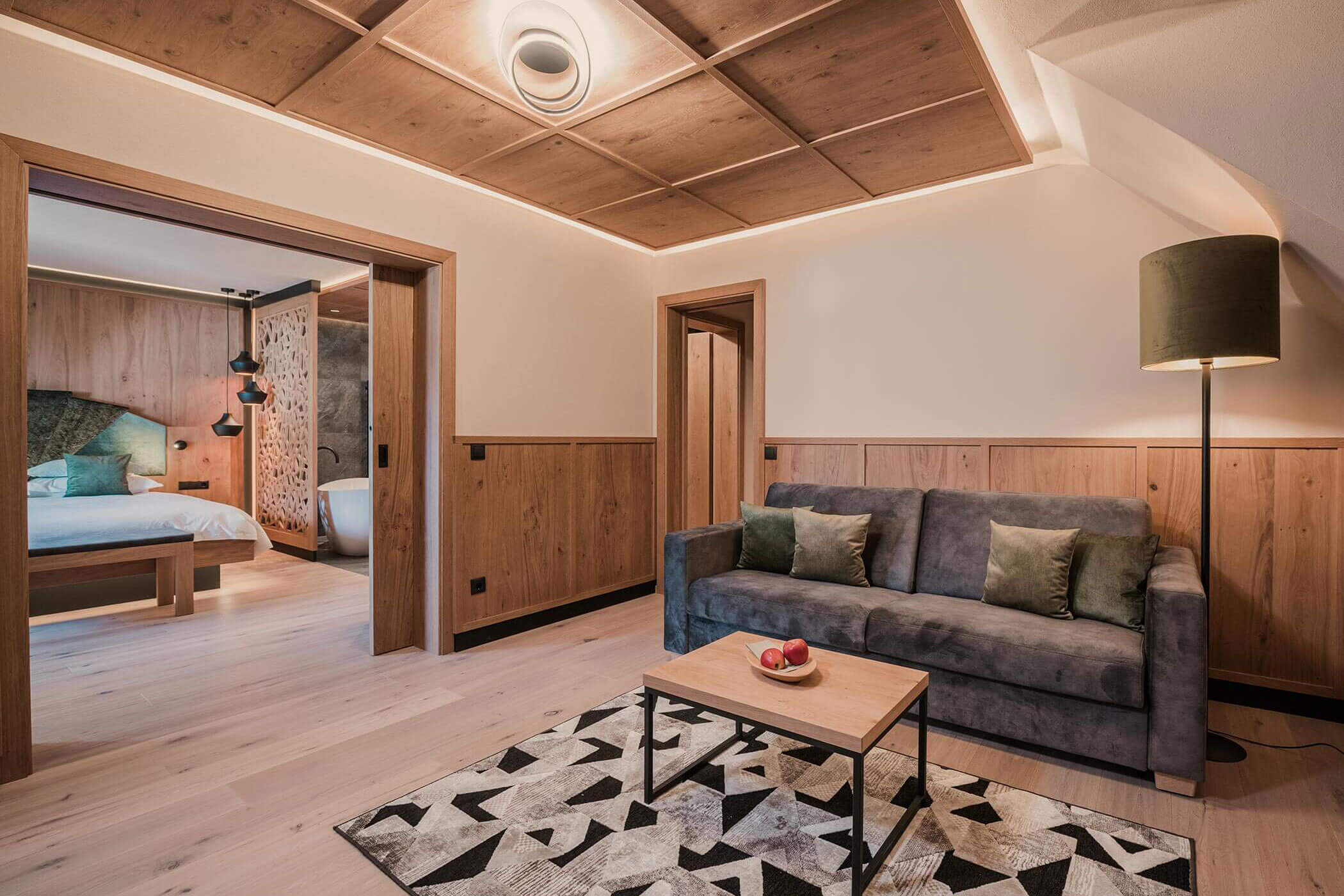 luxuriöser Wohnraum mit Schreibtisch